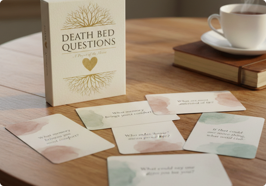 Death Bed Questions can be used as a professional therapeutic and end-of-life support tool.